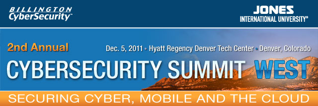 | Denver Post subscribers receive a $200 discount by registering this Friday. This discount is on top of the already reduced early-bird price. Enter the discount code "DPost" below.  Cybersecurity is one of the biggest new threats facing our country this century. Federal, state, and industry leaders agree that now is the time for businesses and every branch of government nationwide to secure their communications and information infrastructure against the risk of cyber attack. Because it¹s no longer a matter of if your organization will be the victim of a cyber attack, but when, and how severe it will be. CyberSecurity Summit WEST brings together an impressive cross-section of leading federal, state, and industry cybersecurity experts to deliver key insights into critical security issues surrounding cyber networks, mobile devices, and cloud infrastructures. Learn what DHS, NSA, FBI and cybersecurity organizations are doing to keep existing and future networks safe from cyber crime before it happens. This event is co-hosted by two leading cybersecurity education providers: Billington CyberSecurity and Jones International University. CyberSecurity Summit WEST keynote speakers represent a distinguished cross-section of legislative bodies and federal agencies. Don't become a cyber crime statistic Companies are learning the hard way they are underprepared for cyber attacks. A recent study by Symantec put the global cost of cybercrime at $114 billion annually. Ponemon Institute, an Internet security research firm, estimates that 2011 security breaches so far have cost U.S. companies $96 billion. And security incidents among 24 key U.S. government agencies have jumped more than 650% in the last five years. Find out how your organization can guard against the crippling financial effects of cyber crime. Other events tend to focus on one particular area of cybersecurity. CyberSecurity Summit WEST breaks that mold to bring you an all-encompassing viewpoint, one that will provide you with strategic and actionable steps that your department, business, or organization can take to help protect its communications and information infrastructure against a possible cyber meltdown. Denver Post subscribers receive a $200 discount by registering this Friday. This discount is on top of the already reduced early-bird price. Enter the discount code "DPost" below.  Here's a brief look at six areas which you can expect to learn at CyberSecurity Summit WEST: 1. Cyber Security Insights from the U.S. Senate and House of Representatives U.S. Senator Michael Bennett's keynote address will focus on cybersecurity priorities that include improving cyber education and public/private partnerships, protecting critical infrastructure, and establishing international laws and norms. Veteran and U.S. House Representative Mike Coffman, a member of the House Armed Services Committee and the Cybersecurity Task Force will discuss his influential role in helping determine which cybersecurity issues could become law, and how that will impact industry. 2. Public/Private Cybersecurity Partnerships Private sector cybersecurity insider Michael Papay, along with the FBI's Joseph Schwecke and State of Colorado officials Todd Olson and Travis Schack, will examine ways in which private- and public-sector companies and organizations can best collaborate at the state and national level to advance the security of our nation's critical cyber infrastructure. The panelists are well attuned to cybersecurity measures now in play in Colorado and will speak to how best to form public/private cyber partnerships at the state and national levels. 3. DHS: The Pervasiveness of Global Cyber Threats DHS official Richard Marshall reviews the communication and information technology revolution from the introduction of the personal computer to current mobile platforms. Hear his insights on the pervasiveness of today's cyber threats and the importance of creating a cyber ecosystem that is highly resistant to degradation and disruption. Other topics that Mr. Marshall will cover include why CEOs should champion com¬mu¬nication and information technology governance and how they can make it a major component of the enterprise infrastructure. 4. Global Cybersecurity: The Role of Law Enforcement The FBI has championed the war on crime crime both at the federal and state level. Listen as Michael Welch, who is responsible for the FBI's Cyber National Security and Cyber Criminal programs, talks about taking the lead against cyber crimes involving espionage, identify theft and a range of critical cybersecurity mandates. 5. Threats in Cyberspace and Emerging Counter-Strategies A world-class panel of cybersecurity experts will include Dick Williams, President and CEO of WebRoot Software; Jim Davis, former FBI Special Agent in charge of Denver and now Executive Director of the Colorado Department of Public Safety; and Eric Green, who serves on the advisory board of the company that developed an important smartphone cybersecurity app. Douglas DePeppe, founder of Western Cyber Initiative, will moderate the panel. It will focus on what can be done to minimize or eliminate high-level cyber threats now facing government departments and private companies. 6. Mobile Cybersecurity With industry leaders predicting that 25 billion devices will be connected to the Internet by 2015, and 50 billion by 2020, the significance of securing America¹s cyber networks cannot be underestimated. NSA's Troy Lange talks about cybersecurity measures that his organization is implementing to safeguard next-generation smartphones and other mobile technology for our country's security community. Denver Post subscribers receive a $200 discount by registering this Friday. This discount is on top of the already reduced early-bird price. Enter the discount code "DPost" below.  Don't miss your opportunity to cybersecure your information infrastructure Find out how your organization can secure its network ag